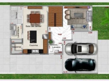 Sala de Estar, lavabo, Cozinha integrada com sala de Jantar, Terraço e 02 vagas de garagem