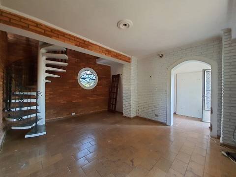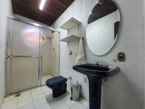 Uma casa de alvenaria, com um apartamento dúplex, churrasqueira e espaço gourmet.