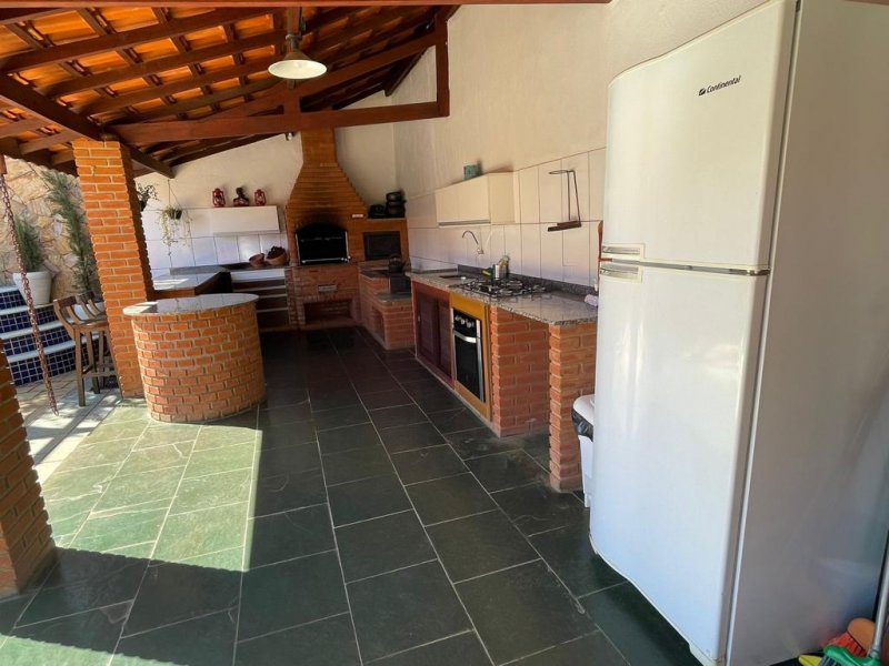 Edícula com churrasqueira, forno e fogão a lenha, forno elétrico, fogão a gás Cooktop. 2 banheiros com ducha.