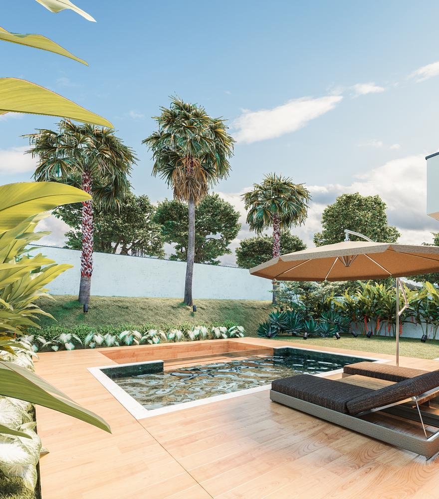 Casa nova, com projeto assinado e ambientes internos integrados e piscina com lounge.