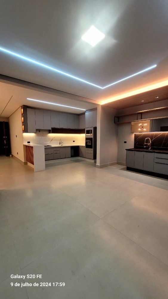 Forro de gesso em todos os ambientes, sanca dupla na sala e Garagem