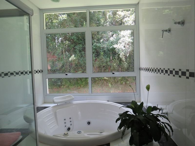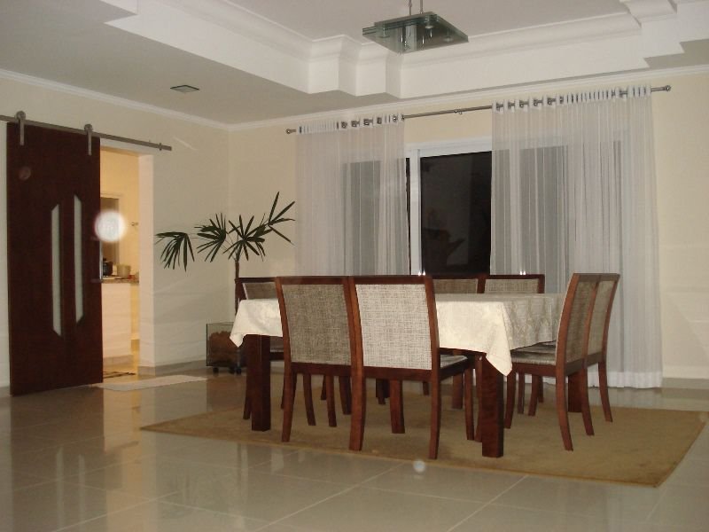 Casa grande e nova, com 4 dormitórios (sendo 1 suíte master com banheira de hidromassagem e com um belo/enorme closet), banheiro, sala com 2 ambientes (área de bar, lareira e jantar) em conceito aberto, cozinha americana (com despensa espaçosa), lavabo e um belo escritório com móveis novos (home office). Imovel bastante arejado e iluminado por estar central no terreno e não possuir vizinhos, temos uma vista repleta de arborismo, além de termos vários vidros que refletem a natureza externa para dentro do imóvel. Móveis de 1ª qualidade e casa toda em porcelanato e detalhes em mármore e granitos.