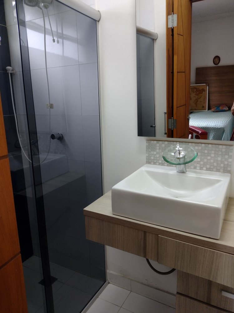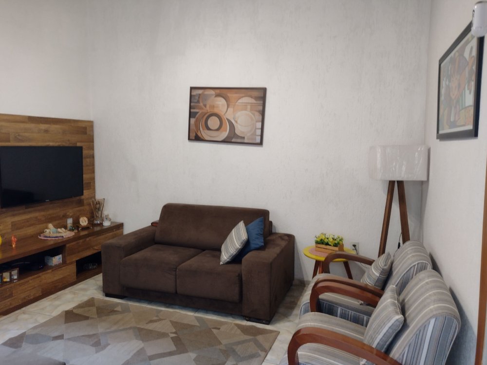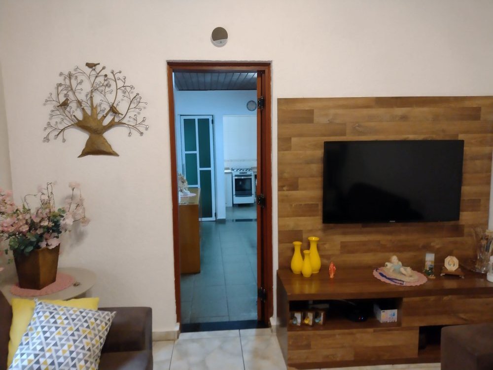 TÉRREO: 2 quartos, sala de estar/TV, sala de jantar, cozinha planejada, 1 banheiro, vaga para 2 carros pequenos.