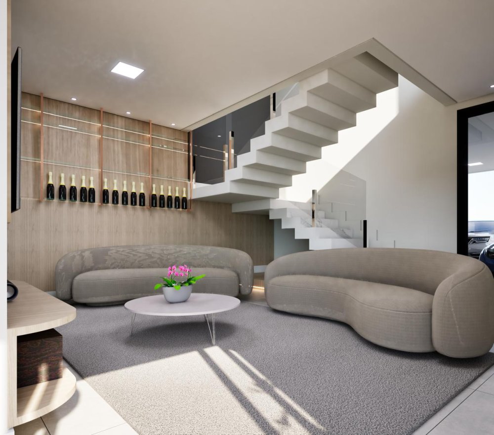 Com um design elegante e acabamentos de alta qualidade, esta residência dispõe de 3 dormitórios, todos eles suítes (sendo uma no térreo), proporcionando privacidade e bem-estar para toda a família. Os 4 banheiros garantem praticidade e conforto no dia a dia.