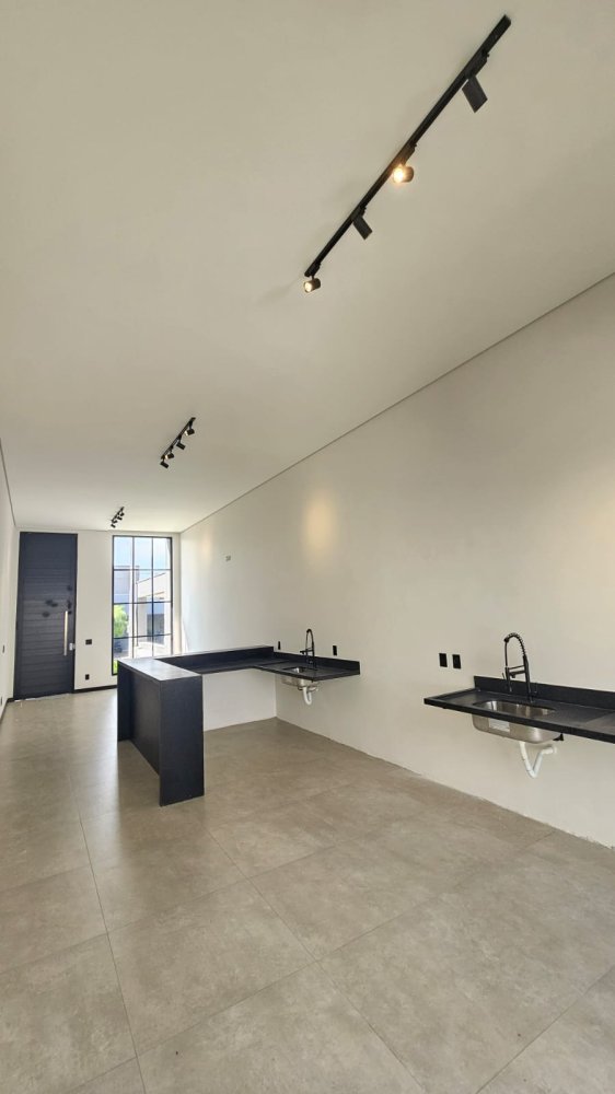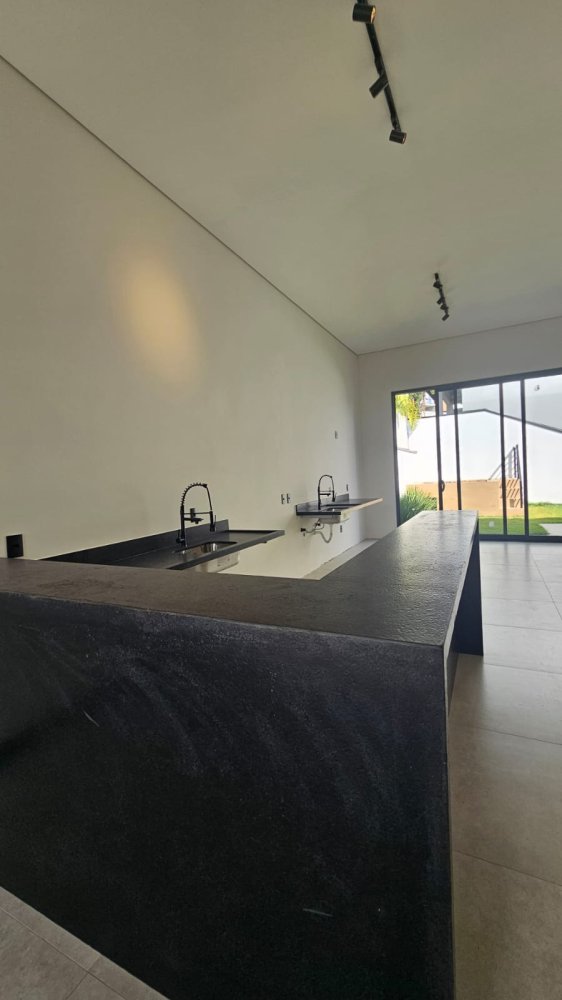 - Sala e cozinha integradas com espaço gourmet.
