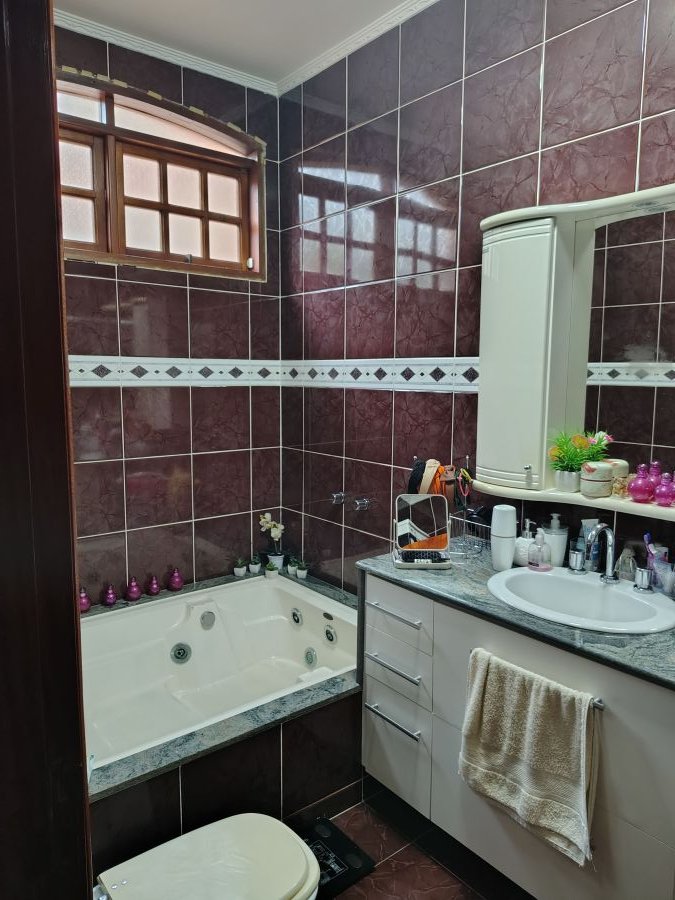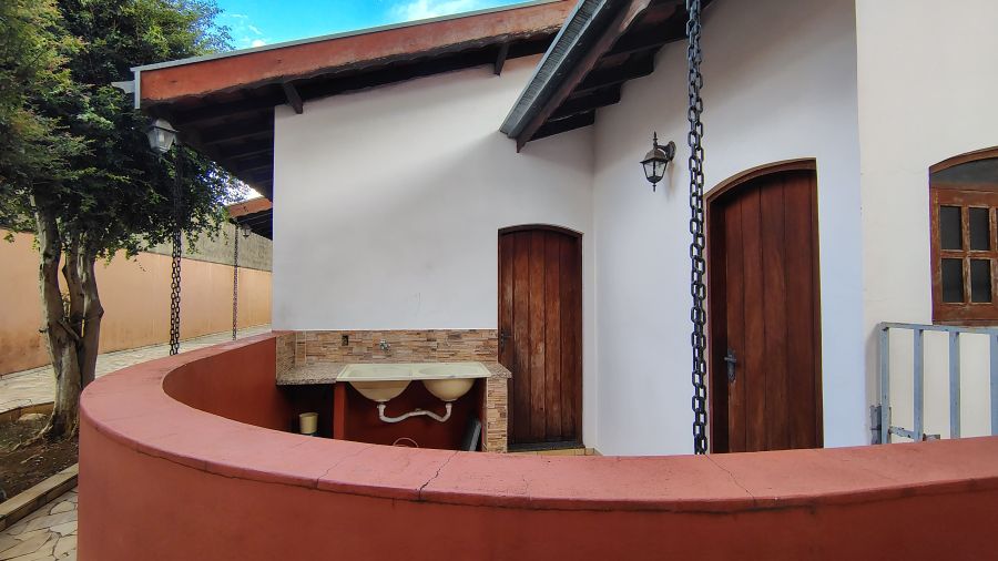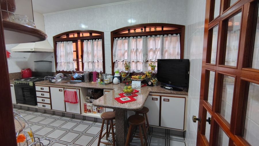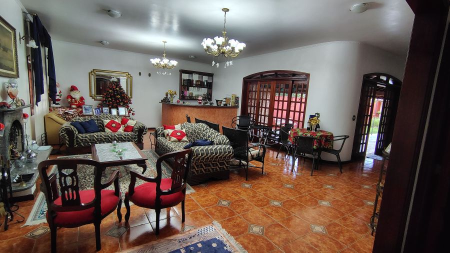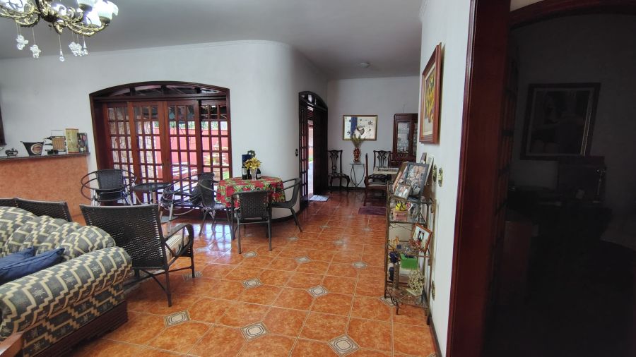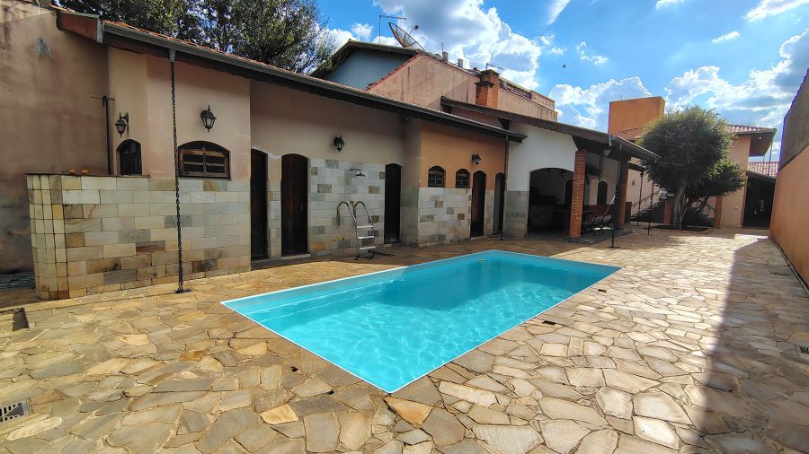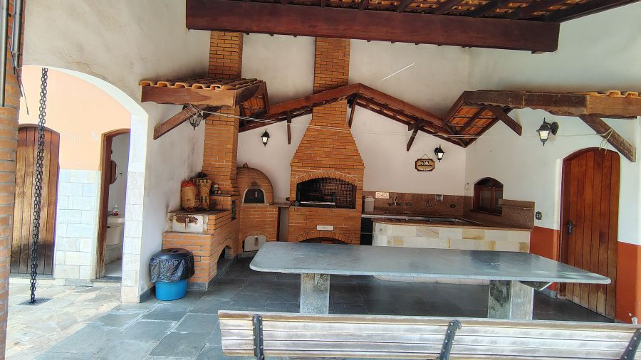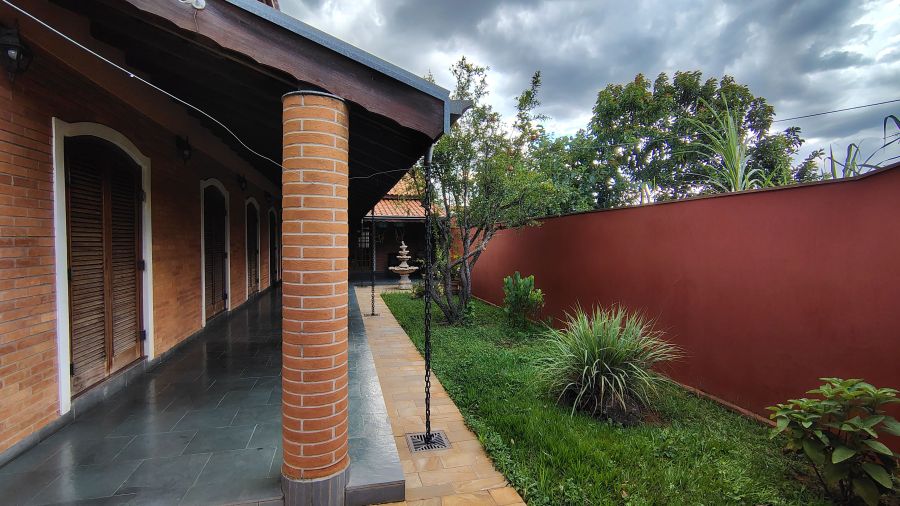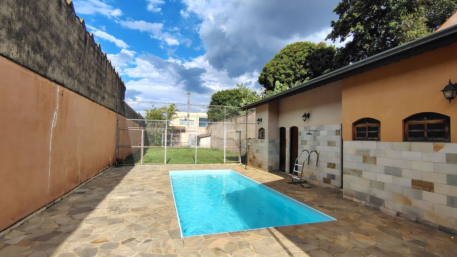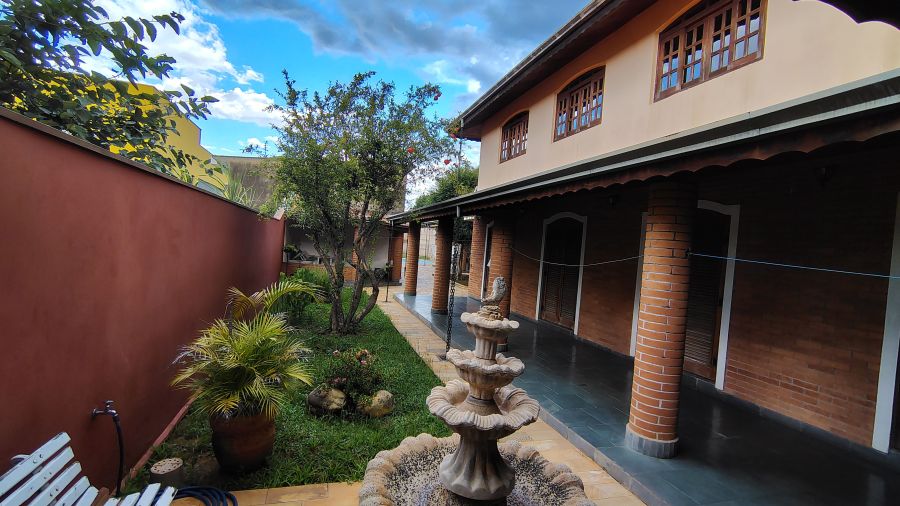 Casa/chácara em excelente localização, construída em 3 terrenos, com 4 dormitórios (sendo 1 suíte), todos com porta balcão para varanda; banheiro social; lavabo; escritório; sala 3 ambientes com bar; adega no sub-solo; ampla cozinha; lavanderia; piscina com banheiro, vestiário e sauna; campo de futebol; canil; dependência de empregada (quarto com banheiro); área gourmet com churrasqueira, forno de pizza e cozinha anexa; salão de festas e/ou jogos grande; quintal com jaboticabeiras e 1 vaga de garagem coberta e 2 descobertas.