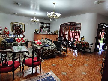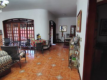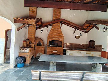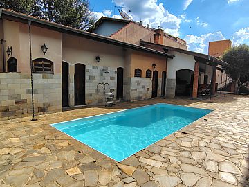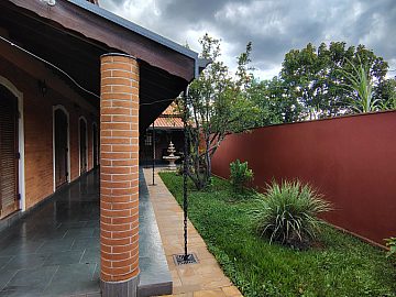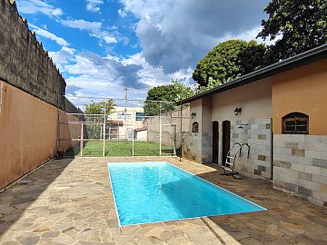 Casa/chácara em excelente localização, construída em 3 terrenos, com 4 dormitórios (sendo 1 suíte), todos com porta balcão para varanda; banheiro social; lavabo; escritório; sala 3 ambientes com bar; adega no sub-solo; ampla cozinha; lavanderia; piscina com banheiro, vestiário e sauna; campo de futebol; canil; dependência de empregada (quarto com banheiro); área gourmet com churrasqueira, forno de pizza e cozinha anexa; salão de festas e/ou jogos grande; quintal com jaboticabeiras e 2 vagas cobertas de garagem.