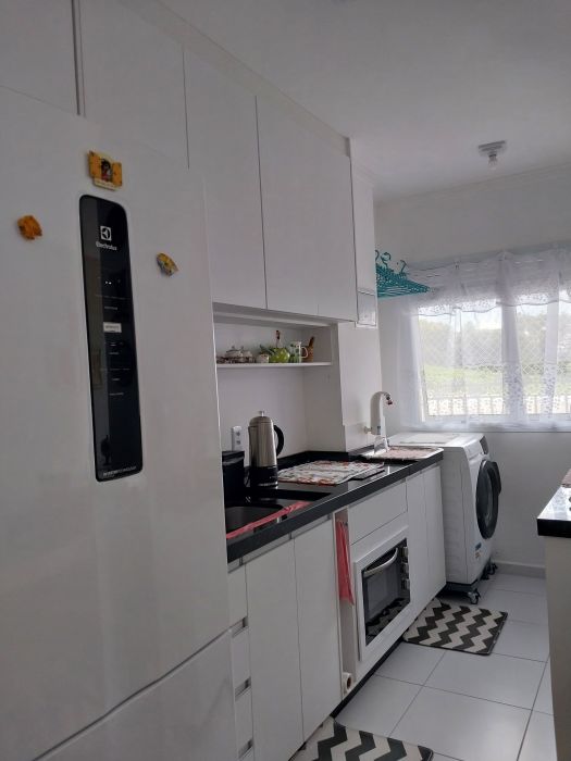 Apartamento com 2 quartos, sendo uma suíte, sala 3 ambientes com sacada estendida que aumentou o espaço, dando o ar de conceito aberto junto com a cozinha americana